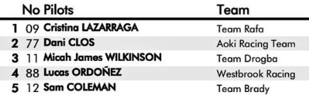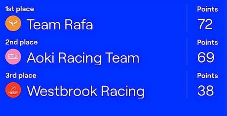 Debido al descalabro en este GP Westbrook Racing se encuentra en tercer lugar, pero bastante lejos de los dos primeros.