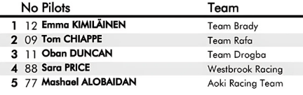 La final 1 se la llevó Emma Kimilainen de Team Brady, haciendo un gran trabajo para asegurar la primera posición en la final 2.