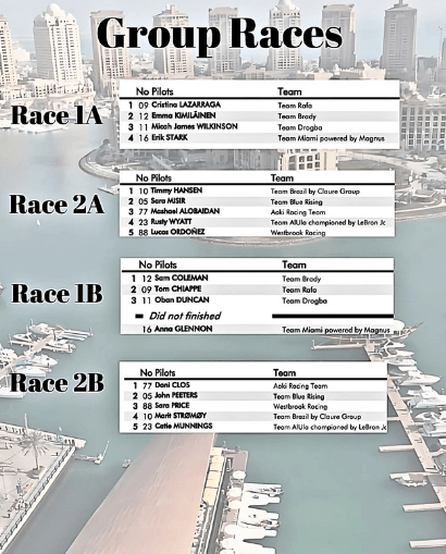 22 de febrero. 22ºC de temperatura, 64% de humedad en The Pearl Island. La acción comenzó desde temprano con las carreras de grupos, donde desde el principio el Team Rafa comenzó dominando gracias al talento de Cris Lazarraga y Tom Chiappe. Cris logró ganar su carrera de grupo con una ventaja de 12 segundos sobre sus competidores, mientras que Tom quedó en segundo lugar de su grupo, solo vencido por Sam Coleman del Team Brady.
