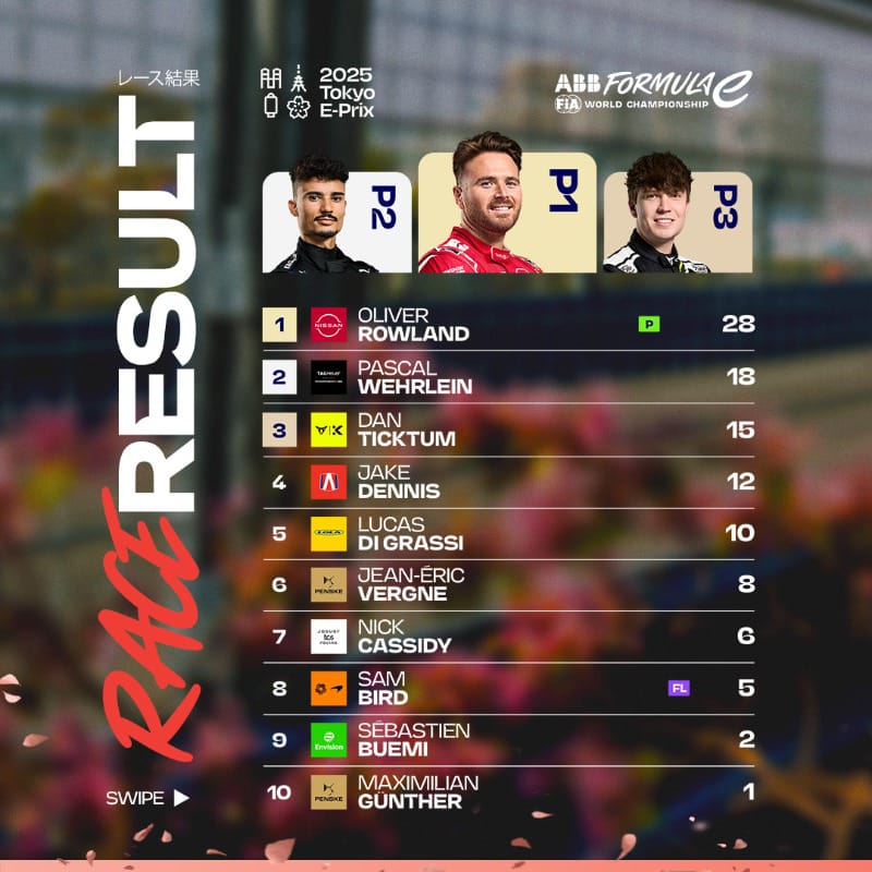 La temporada 11 del campeonato de la FIA ABB Formula E está que arde, y este fin de semana de doble Tokyo E-Prix, aunque como de costumbre sobraron las sorpresas, Oliver Rowland volvió a demostrar que ni el clima se interpondrá entre él y el título que ya está cerca de ganar junto con su equipo, el local de Japón, Nissan Nismo Formula E team.