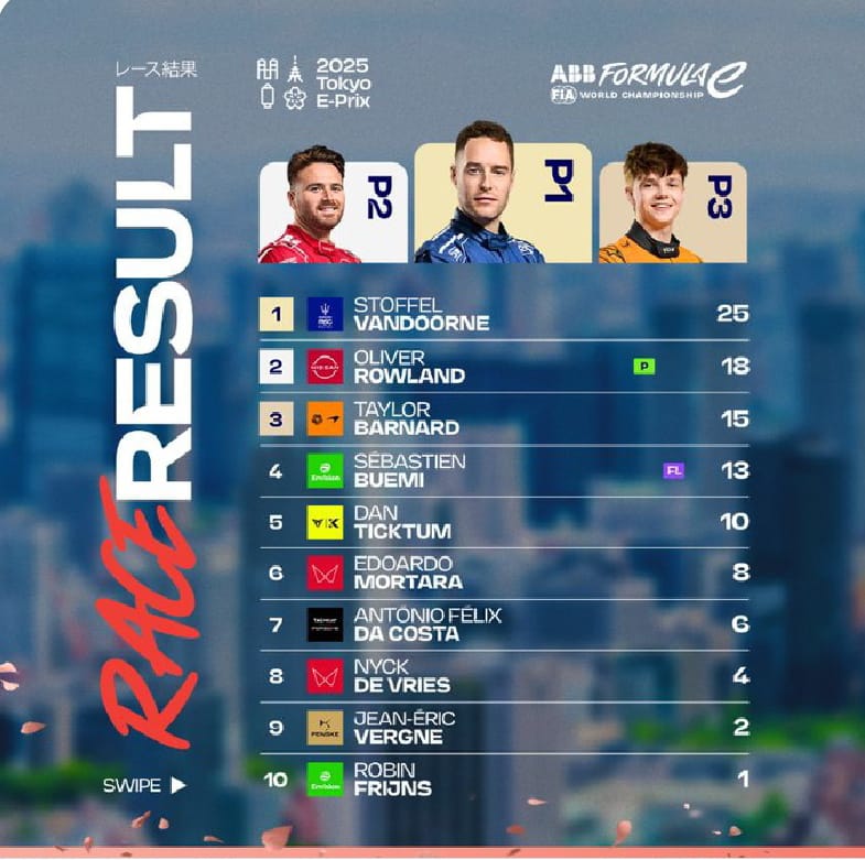 Pero la efusiva reacción de sus fans fue superada sin duda por el impacto que el polémico piloto Dan Ticktum, del equipo Cupra Kiro, provocó en seguidores y detractores que no tuvieron más opción que aplaudir su incuestionable desempeño en la segunda carrera del Tokyo E-Prix (ronda 9 del campeonato) al verlo subir al podio por primera vez en su carrera dentro de la categoría, además de haber sido nombrado el piloto del día, a lo que respondió que su reputación como villano en realidad le tiene sin cuidado: