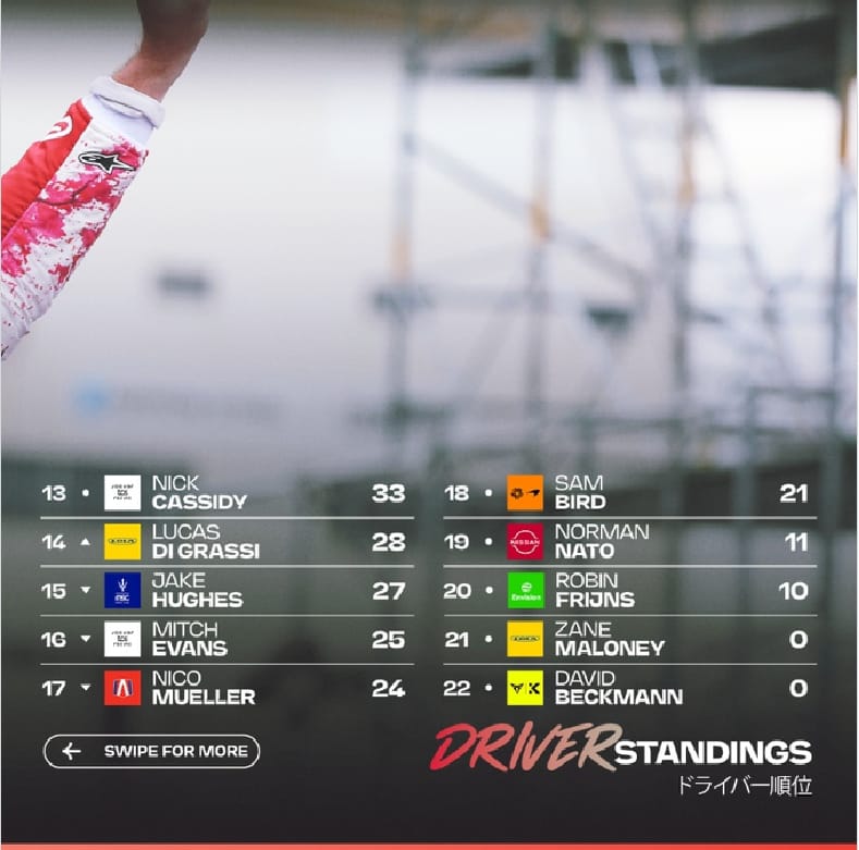 Asimismo, Pascal Wehrlein, con su segundo lugar en la ronda 9, desbancó a su compañero Antonio Félix da Costa del segundo lugar del campeonato.